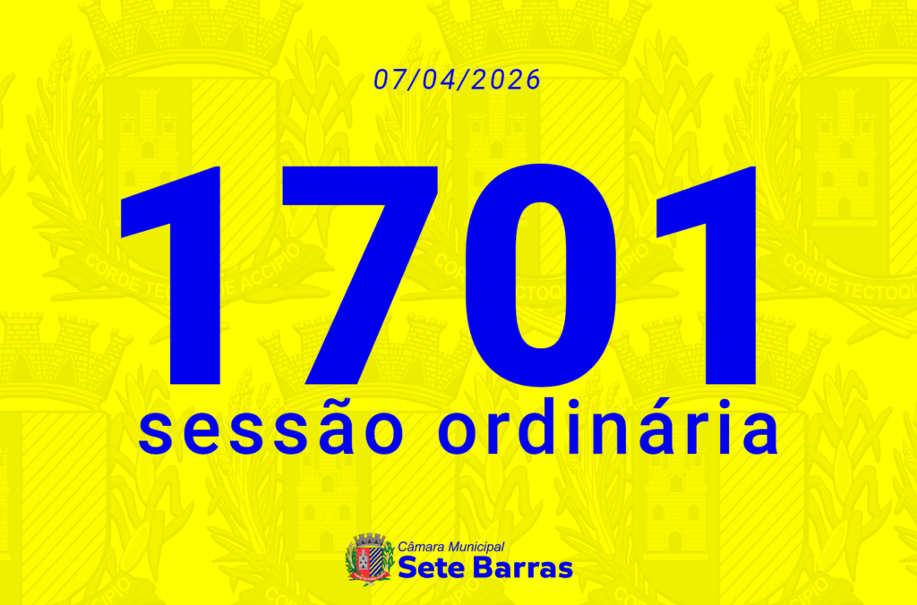 PAUTA SESSÃO ORDINÁRIA Nº 1701º – 07/04/2026 LEITURA DA BÍBLIA * SALMO 62– FELIPE GONÇALVES DA SILVA ***************EXPEDIENTE**************** VOTAÇÃO DE ATA: Votação da Sessão Ordinária: Nº 1700º de 31/03/2026. INDICAÇÃO INDICAÇÃO Nº 062/2026 Indico à Mesa, dispensadas as formalidades regimentais, que seja oficiado o Sr. Ítalo Donizeth Costa Roberto, DD. Prefeito de Sete Barras, solicitando […]